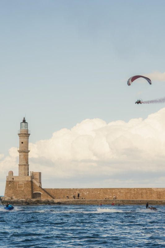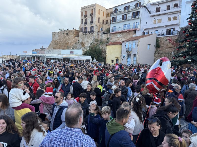 Με τη βοήθεια της συμμορίας του Αϊ-Βασίλη, δηλαδή των εκατοντάδων παιδιών που βρέθηκαν χθες στο Ενετικό Λιμάνι Χανίων, σώθηκαν και φέτος τα Χριστούγεννα. Οι μικροί φίλοι του Αϊ-Βασίλη ακολούθησαν με ανυπομονησία το ξέφρενο ταξίδι του, ο οποίος, φέτος, κατέφθασε ιπτάμενος στα Χανιά με μηχανοκίνητο paraglide.