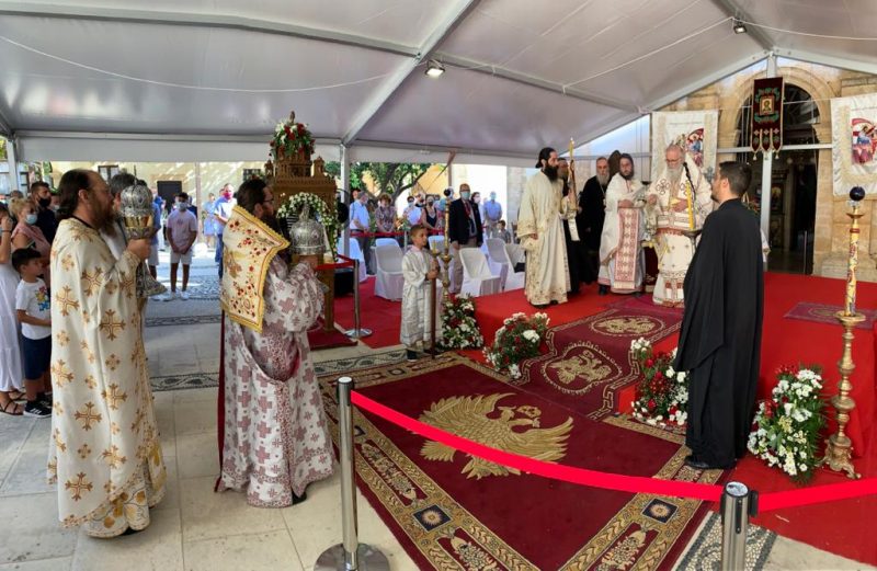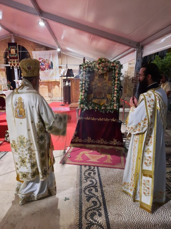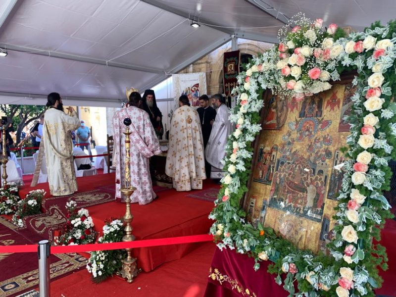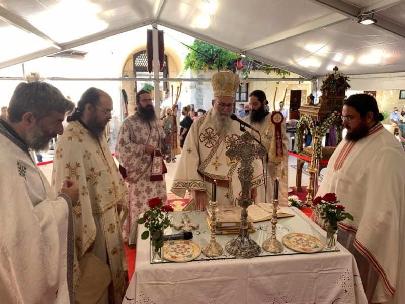 Το πρωί της παραμονής προεξήρχε της πανηγυρικής Θείας Λειτουργίας εις την Ι. Μονή Παναγίας Χρυσοσκαλιτίσσης, το δε εσπέρας και την κυριώνυμο ημέρα προεξήρχε απασών των λατρευτικών εκδηλώσεων εις την Ι. Πατριαρχική και Σταυροπηγιακή Μονή Οδηγητρίας Γωνιάς.