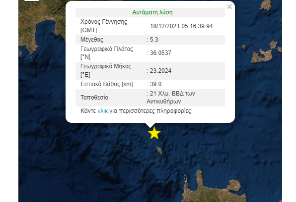 ΕΛΛΑΔΑ Σεισμός 5,3 Ρίχτερ στα Αντικύθηρα 18 Δεκεμβρίου 2021 09:41 Μοιραστείτε αυτό! Facebook Twitter Google Plus Pinterest LinkedIn Σεισμός σημειώθηκε στις 7:16 σήμερα το πρωί. Το μέγεθος σύμφωνα με το Γεωδυναμικό Ινστιτούτο είναι 5,3 Ρίχτερ και το επίκεντρο εντοπίζεται 21 χλμ. βορειο-δυτικά των Αντικυθήρων. Το εστιακό βάθος είναι 39 χλμ. #pgnews μπορεί να σου αρέσει επίσης ΑΓΡΟΤΙΚΑ • ΚΡΗΤΗ Σταύρος Αρναουτάκης: «Η Κρήτη μεγάλη χαμένη της νέας ΚΑΠ. Αναγκαίος ο άμεσος εξορθολογισμός των πόρων» 5 Δεκεμβρίου 2025 ΕΛΛΑΔΑ • ΕΝΔΙΑΦΕΡΟΝΤΑ Social Media: Πού κάνουν «like» οι Έλληνες; 5 Δεκεμβρίου 2025 ΚΡΗΤΗ Ώρα για μπριτζ! Οι καλύτεροι αθλητές όλης της Ελλάδας δίνουν ραντεβού στην Κρήτη! 5 Δεκεμβρίου 2025 Καιρός: Στην κατάψυξη όλη η χώρα – Πολικές θερμοκρασίες το Σαββατοκύριακο Πανελλαδικές 2022: Ποιες είναι οι ελάχιστες βάσεις εισαγωγής στα πανεπιστήμια Μοιραστείτε αυτό! Facebook Twitter Google Plus Pinterest LinkedIn ΡΟΗ ΕΙΔΗΣΕΩΝ ΑΓΡΟΤΙΚΑ • ΚΡΗΤΗ Σταύρος Αρναουτάκης: «Η Κρήτη μεγάλη χαμένη της νέας ΚΑΠ. Αναγκαίος ο άμεσος εξορθολογισμός των πόρων» 5 Δεκεμβρίου 2025 18:39 ΕΛΛΑΔΑ • ΕΝΔΙΑΦΕΡΟΝΤΑ Social Media: Πού κάνουν «like» οι Έλληνες; 5 Δεκεμβρίου 2025 18:37 ΚΡΗΤΗ Ώρα για μπριτζ! Οι καλύτεροι αθλητές όλης της Ελλάδας δίνουν ραντεβού στην Κρήτη! 5 Δεκεμβρίου 2025 18:35 ΕΛΛΑΔΑ • ΠΟΛΙΤΙΚΗ Δίκη Βαλυράκη: «Τον χτύπησαν με κοντάρι και τον άφησαν στη θάλασσα», κατέθεσε αυτόπτης μάρτυρας 5 Δεκεμβρίου 2025 18:28 ΠΟΛΙΤΙΚΗ Πολάκης για την παρουσίαση του βιβλίου Τσίπρα: «Έχω υψοφοβία από τα θεωρεία» 5 Δεκεμβρίου 2025 17:16 ΚΡΗΤΗ • ΤΟΥΡΙΣΜΟΣ Κρήτη: Θεαματικές οι προκρατήσεις αλλά κρατούν “μικρό καλάθι” οι τουριστικοί φορείς 5 Δεκεμβρίου 2025 17:13 Δήμος Κισάμου • ΠΑΙΔΕΙΑ - ΕΚΠΑΙΔΕΥΣΗ Κίσαμος: Διαδραστικό εργαστήριο «Ζογκλερικά Αλλιώς» με τον Circus Camino στην Ποταμίδα 5 Δεκεμβρίου 2025 14:19 ΕΛΛΑΔΑ • ΚΡΗΤΗ Νέο Έκτακτο Δελτίο Επιδείνωσης Καιρού – Η εικόνα στην Κρήτη 5 Δεκεμβρίου 2025 13:16 Νομός Χανίων Χανιά: Η Δημοτική Βιβλιοθήκη εκπροσώπησε την Ελλάδα στο διεθνές πρόγραμμα «Βιώσιμες Βιβλιοθήκες» του Goethe-Institut στη Βαρσοβία 5 Δεκεμβρίου 2025 13:10 Νομός Χανίων Χανιά: Χωρίς προβλήματα η κακοκαιρία Byron – Προειδοποίηση για νέα επιδείνωση 5 Δεκεμβρίου 2025 13:09 ΕΛΛΑΔΑ ΓΣEE: Τι ισχύει για τους εργαζόμενους σε συνθήκες κακοκαιρίας 5 Δεκεμβρίου 2025 12:57 ΕΛΛΑΔΑ • ΟΙΚΟΝΟΜΙΑ ΕΛΣΤΑΤ: Στο 2% η ανάπτυξη της ελληνικής οικονομίας κατά το τρίτο τρίμηνο του έτους 5 Δεκεμβρίου 2025 12:43 ΕΛΛΑΔΑ • ΟΙΚΟΝΟΜΙΑ Aνακήρυξη της Πειραιώς ως η «Καλύτερη Τράπεζα στην Ελλάδα» στα Bank of the Year Awards 2025 5 Δεκεμβρίου 2025 12:35 ΚΡΗΤΗ Kρήτη: Δε στάθηκε εμπόδιο η βροχή στο συλλαλητήριο των συνταξιούχων 5 Δεκεμβρίου 2025 12:28 ΑΓΡΟΤΙΚΑ • ΚΡΗΤΗ Kρήτη: Κλειστά τη Δευτέρα λιμάνια, αεροδρόμια και δημόσιες υπηρεσίες μετά την ακύρωση της συνάντησης με τον Κωστή Χατζηδάκη 5 Δεκεμβρίου 2025 12:10 Δημοφιλή αυτή την εβδομάδα