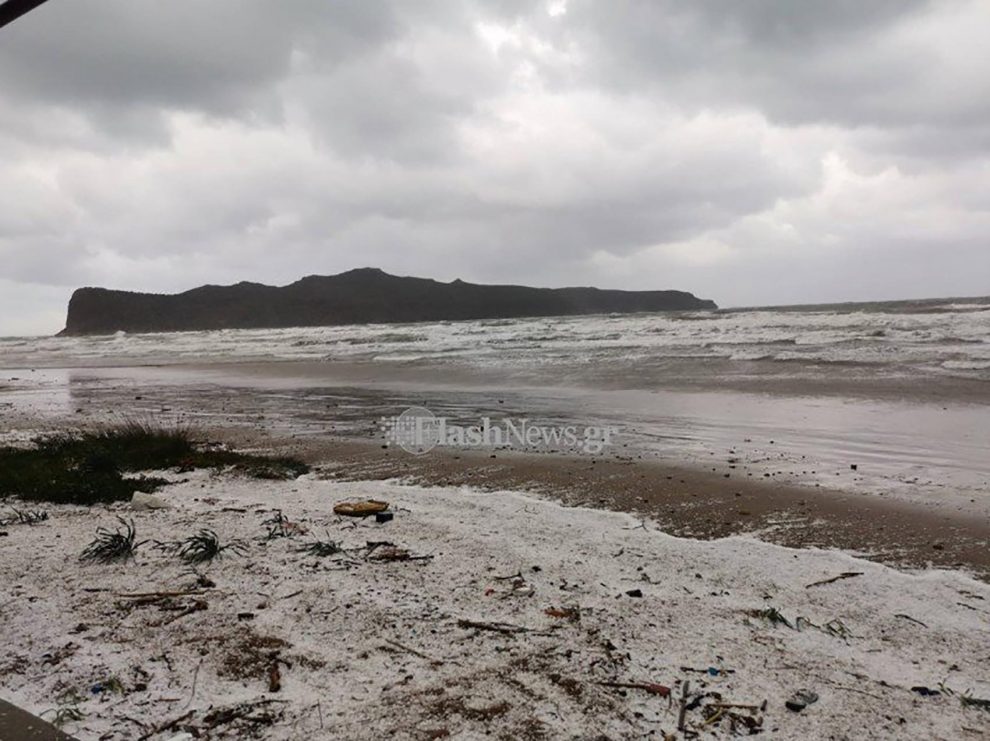 Ο κακός καιρός έδειξε τα δόντια του με χιόνι στα ορεινά του νομού Χανίων, καταιγίδες και χαλαζόπτωση σε πολλές περιοχές όχι μόνο στα λίγο πιο μεγάλα υψόμετρα και μάλιστα στα πεδινά του νομού Χανίων.