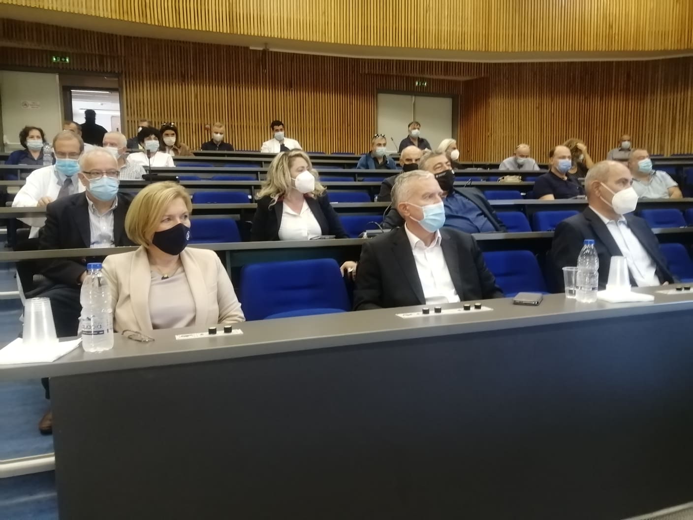 Ακολούθησε σύσκεψη στο αμφιθέατρο του νοσοκομείου με συμμετοχή του ιατρικού, νοσηλευτικού και λοιπού προσωπικού, κατά τη διάρκεια οποίας συζητήθηκε το απότυπωμα της πανδημίας στη λειτουργία των κλινικών.