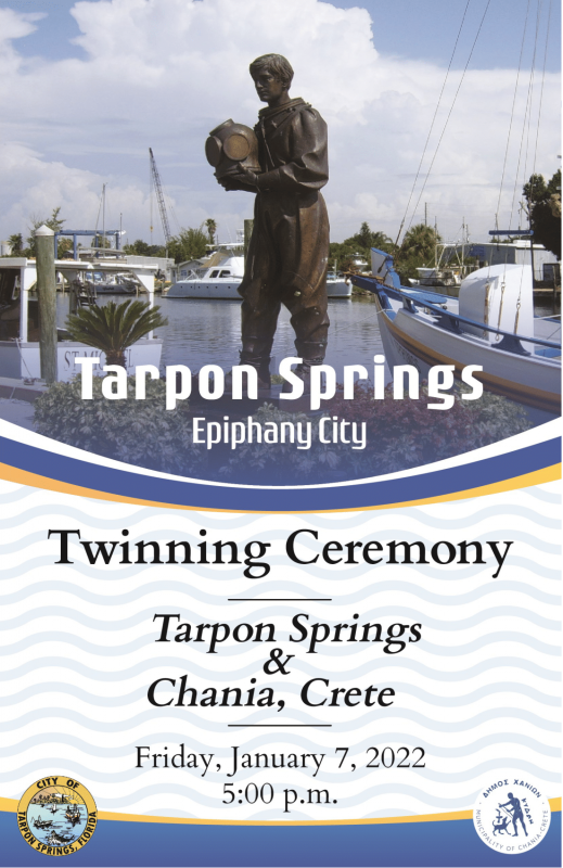 Υπενθυμίζεται ότι η πρώτη φάση της αδελφοποίησης, πραγματοποιήθηκε στις 20 Σεπτεμβρίου 2021 σε μια συμβολική τελετή στο Φρούριο Φιρκά, στο Ενετικό Λιμάνι των Χανίων. Με φόντο τον Φάρο και το Λιμάνι των Χανίων, στο σημείο που έγινε η επίσημη τελετή Ένωσης της Κρήτης με την Ελλάδα το 1913, οι Δήμαρχοι Χανίων και Τάρπον Σπρινγκς, Παναγιώτης Σημανδηράκης και Χρυσόστομος Αλαχούζος αντίστοιχα, υπέγραψαν το πρωτόκολλο αδελφοποίησης των δύο πόλεων.