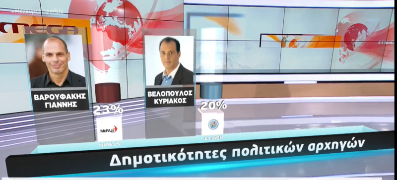 Χαμηλά σε δημοτικότητα ο Γ. Βαρουφάκης (23%) και ο Κυριάκος Βελόπουλος (20%).
