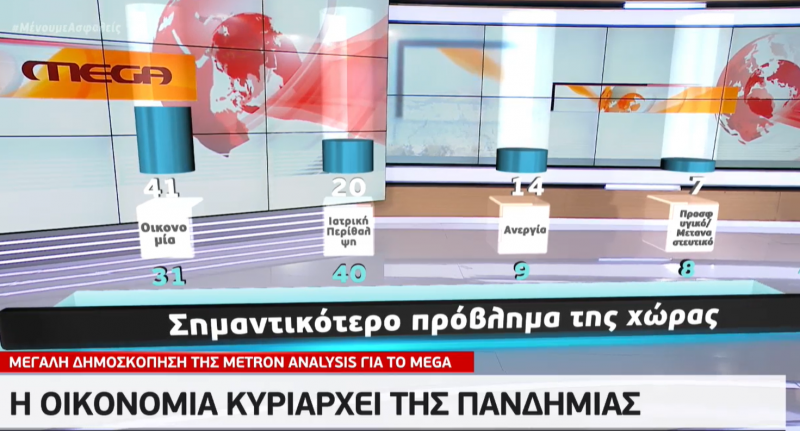 Σύμφωνα με την έρευνα, η ανησυχία για την οικονομία έχει υπερκεράσει τον φόβο για την πανδημία. Το 41% πιστεύει ότι το σημαντικότερο πρόβλημα είναι η οικονομία καθώς περάσαμε στην επόμενη φάση. Το 20% πιστεύει ότι είναι η ιατρική περίθαλψη και το 14% η ανεργία.