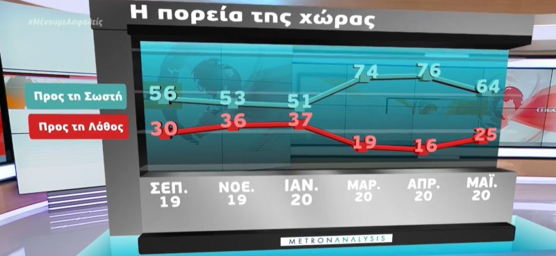 Η κυβέρνηση και προσωπικά ο πρωθυπουργός Κυριάκος Μητσοτάκης, εξακολουθούν να απολαμβάνουν την εμπιστοσύνη των πολιτών με μεγάλη διαφορά έναντι του ΣΥΡΙΖΑ και του Αλέξη Τσίπρα, σύμφωνα με την δημοσκόπηση της Metron Analysis για λογαριασμό του Mega.