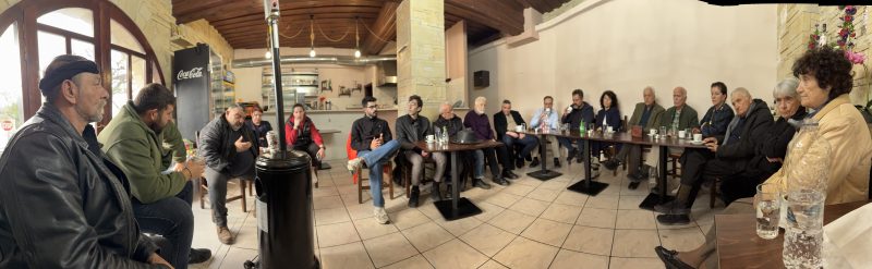 Με τη συμμετοχή των κατοίκων, έγινε συνάντηση το απόγευμα της ίδιας μέρας στο Καφενείο στον Κουρνά. Συζητήθηκαν διάφορα ζητήματα που αφορούν την περιοχή, την ερήμωση της κρητικής υπαίθρου, την οικογένεια, την υγεία, το φυσικό περιβάλλον, την οικιακή οικονομία, την αξία των φυτικών και φυσικών νημάτων και την Ιερή τέχνη της Υφαντικής της Κρήτης
