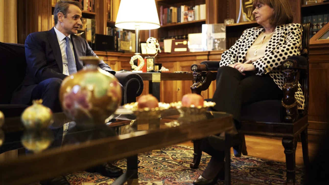 Στο πλαίσιο των τακτικών μηνιαίων ενημερώσεων που κάνει ο πρωθυπουργός στην Πρόεδρο της Δημοκρατίας, μετέβη πριν από λίγο στο Προεδρικό Μέγαρο, ο Κυριάκος Μητσοτάκης.