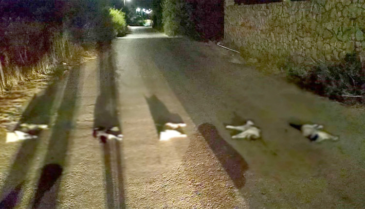 Οι πέντε γάτες σφαγιάστηκαν στο λαιμό και μετά τοποθετήθηκαν η μια δίπλα στην άλλη στο οδόστρωμα από τους αγνώστους, οι οποίοι προέβησαν στην αποτρόπαια αυτή πράξη.
