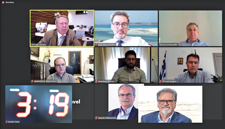 Μετά από πρόσκληση των εκπροσώπων του τουρισμού της Κρήτης, πραγματοποιήθηκε σχετική τηλεδιάσκεψη στην οποία συμμετείχαν εκτός από τους τουριστικούς εκπροσώπους και ο περιφερειάρχης Κρήτης Σταύρος Αρναουτάκης, ο εντεταλμένος σύμβουλος Τουρισμού Κυριάκος Κώτσογλου και δήμαρχοι των Τουριστικών Δήμων Αγίου Νικολάου, Αντώνης Ζερβός, Μαλεβιζίου, Μενέλαος Μποκέας, Πλατανιά, Γιάννης Μαλανδράκης, Ρεθύμνου, Γιώργος Μαρινάκης και Χερσονήσου, Γιάννης Σέγκος.