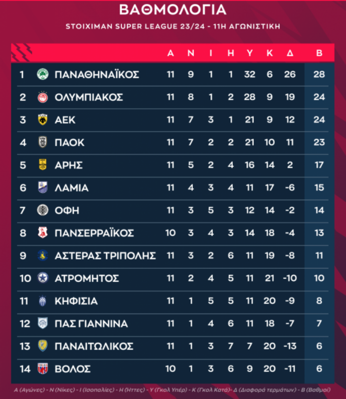 Τα αποτελέσματα της 11ης αγωνιστικής στη Super League: