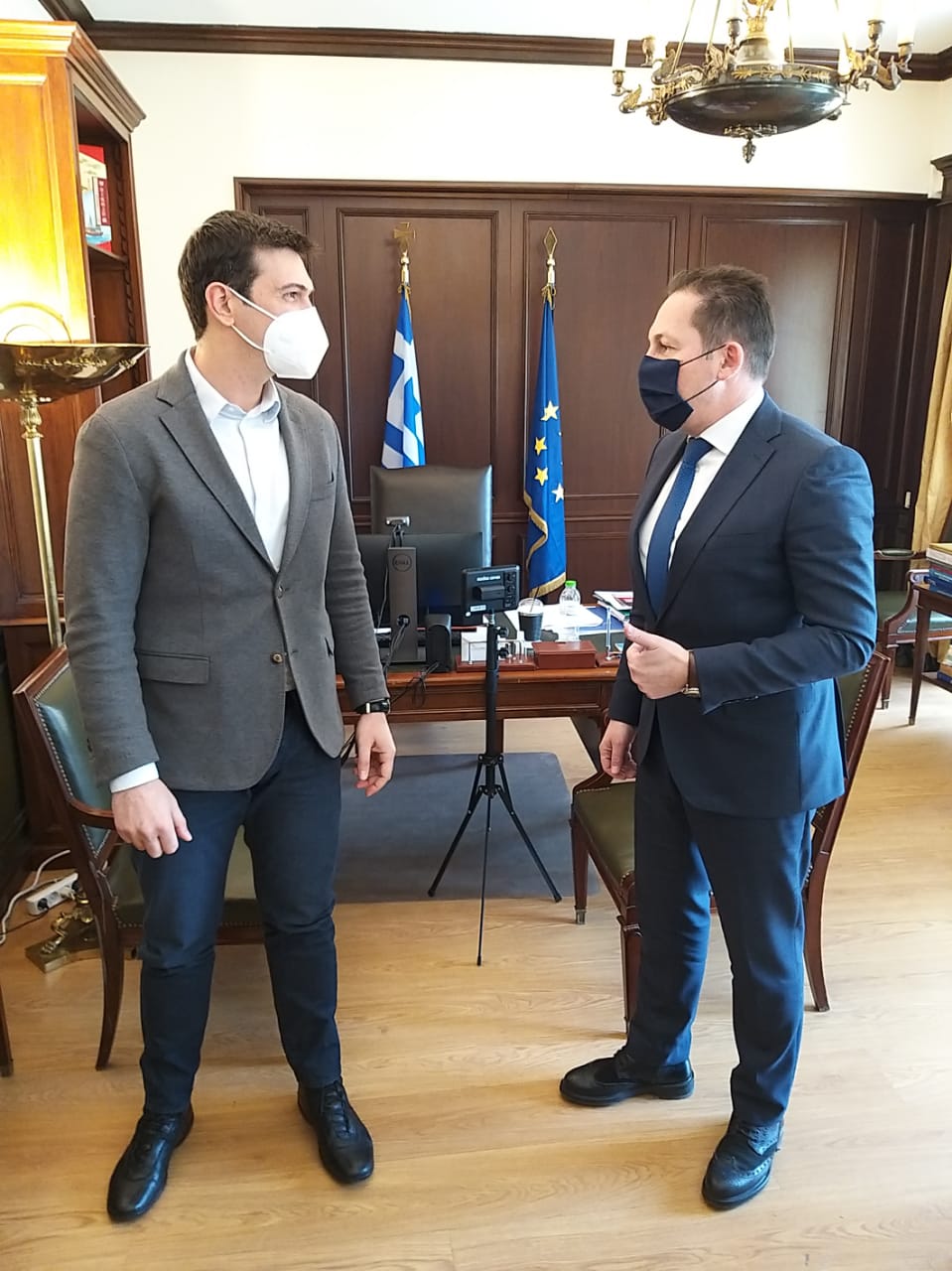 Η συνάντησή μας έκλεισε ευχαριστώντας τον Υπουργό για την πρωτοβουλία του να στηρίξει χρηματοδοτικά τους δήμους, των οποίων τα έσοδα λόγω της πανδημίας μειώθηκαν. Στην Κρήτη, συγκεκριμένα, ενέκρινε σχεδόν 4 εκ. ευρώ στο σύνολο των δήμων της περιφέρειας.»