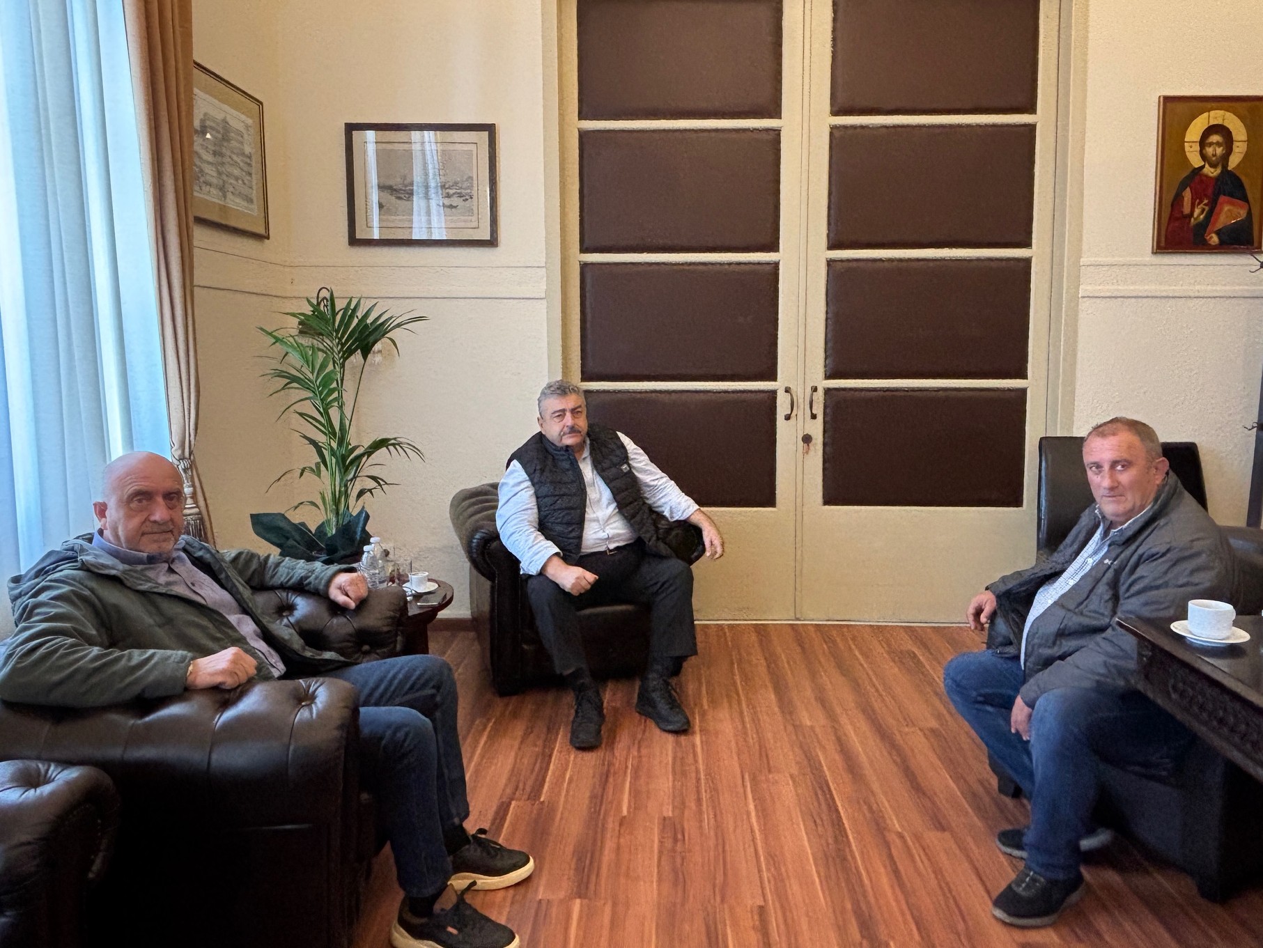 Συνάντηση για θέματα των Δήμων Κισάμου και Σφακίων πραγματοποιήθηκε την Πέμπτη 2 Απριλίου 2026 στα γραφεία της Περιφερειακής Ενότητας Χανίων, μεταξύ του Αντιπεριφερειάρχη Χανίων Νίκου Καλογερή, του Δημάρχου Κισάμου Γιώργου Μυλωνάκη και του Δημάρχου Σφακίων Γιάννη Ζερβού.