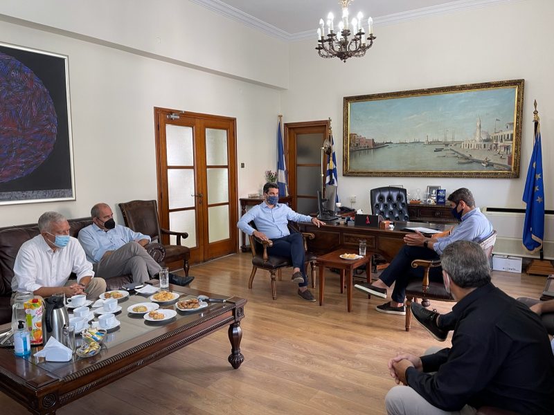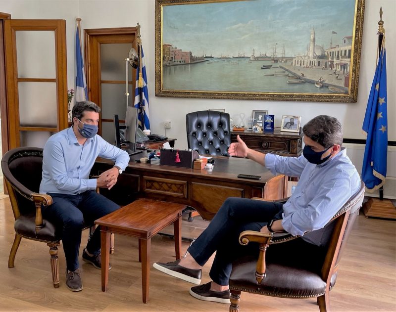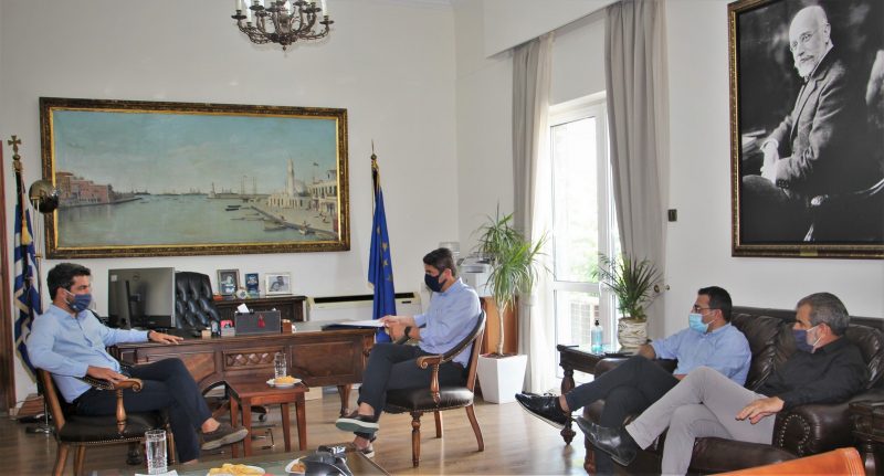 Συνάντηση με τον Υφυπουργό Αθλητισμού, Λευτέρη Αυγενάκη, είχε σήμερα, Πέμπτη 19/8/2021, ο Δήμαρχος Χανίων, Παναγιώτης Σημανδηράκης, στο πλαίσιο της προγραμματισμένης επίσκεψης του κ. Αυγενάκη στα Χανιά. Στη συνάντηση, που πραγματοποιήθηκε στο Γραφείο του Δημάρχου Χανίων, παρευρέθηκαν μεταξύ άλλων οι Βουλευτές Χανίων, Βασίλης Διγαλάκης και Μανούσος Βολουδάκης, ο Γενικός Γραμματέας του Δήμου, Γιώργος Φραγκιαδάκης, και οι Αντιδήμαρχοι, Αθλητισμού, Στέλιος Μιχαηλάκης και Υπηρεσίας Δόμησης, Νίκος Χαζιράκης.