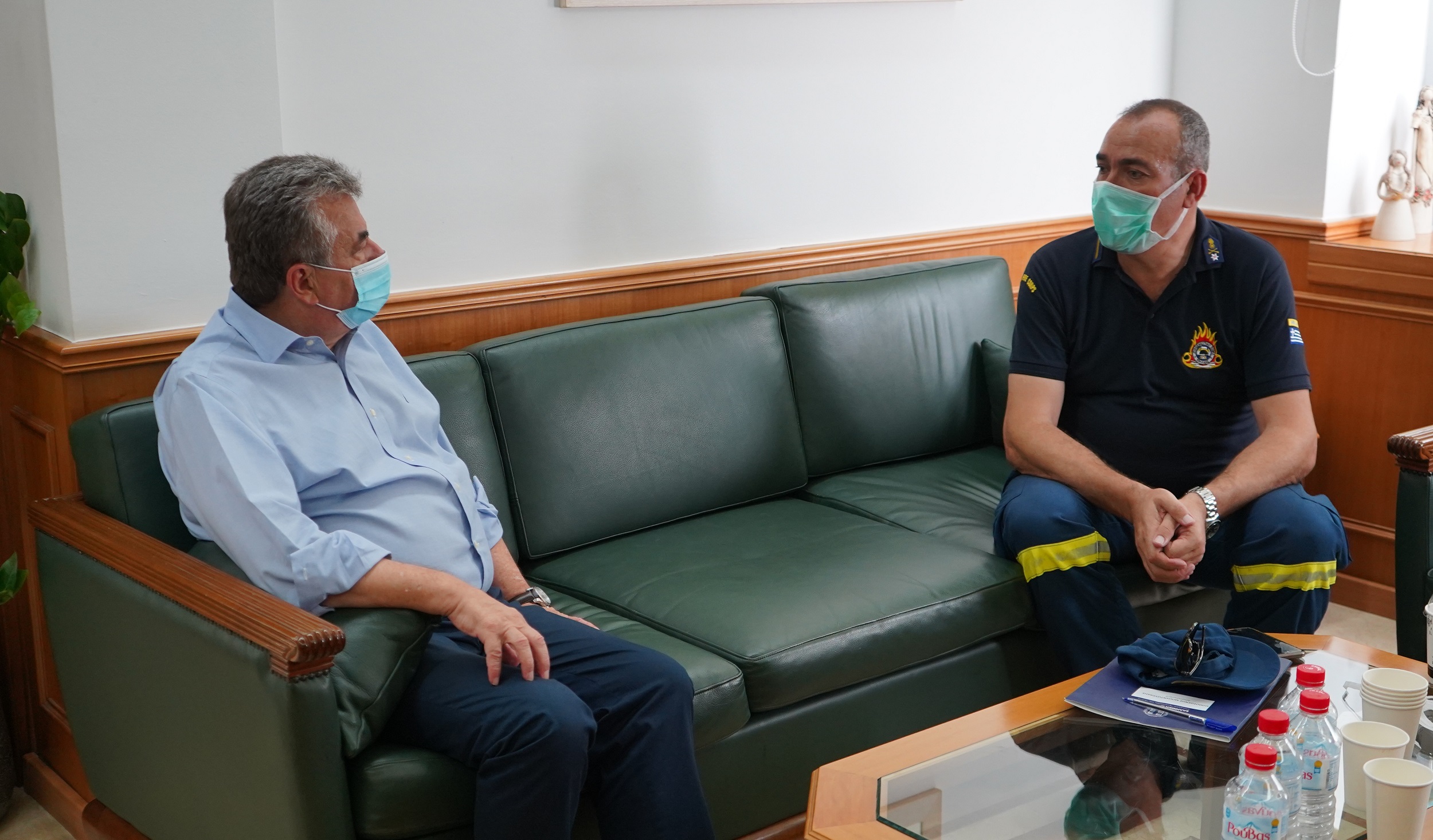Τον Περιφερειάρχη Κρήτης Σταύρο Αρναουτάκη επισκέφθηκε σήμερα ο Περιφερειακός Διοικητής των Πυροσβεστικών Υπηρεσιών Κρήτης Δημήτρης Μπουντουράκης ο οποίος ενημέρωσε για την πορεία της αντιπυρικής περιόδου και την αντιμετώπιση των πυρκαγιών που έχουν εκδηλωθεί στο νησί.