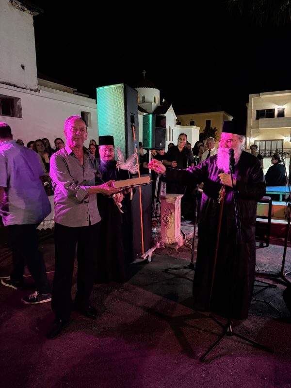«Με χαρά, τιμή και αγάπη καλωσορίζουμε τα ευλογημένα και χαριτωμένα πρόσωπα όλων σας, σε αυτό το ξεχωριστό-μοναδικό μουσικό ταξίδι που μας χάρισε η σύμπραξη των δύο Χορωδιών του Ωδείου της Ι.Μητροπόλεως μας. Ωδείο, το οποίο στεγάζεται, ανάμεσα σε πολλές άλλες δομές και δραστηριότητες, στο Τσατσαρωνάκειο Πολιτιστικό Πολύκεντρο της Ιεράς Μητροπόλεως μας, όπου σε εβδομαδιαία βάση φιλοξενεί περισσότερα από 300 παιδιά, νέους και ενήλικες, στο πλήθος των δραστηριοτήτων του. Ευγνώμονα μνημονεύουμε και ευχαριστούμε την οικογένεια Νικολάου και Μαρίας Τσατσαρωνάκη για την μεγάλη αυτή ευεργεσία, προσφοράς του Πολύκεντρου στον τόπο μας και τους ανθρώπους του, καθώς λειτουργεί ως πνευματική κυψέλη που δημιουργεί πολιτισμό, ανεβάζοντας τον τόπο μας ‘λίγο ψηλότερα’, όπως λέει και ο ποιητής.