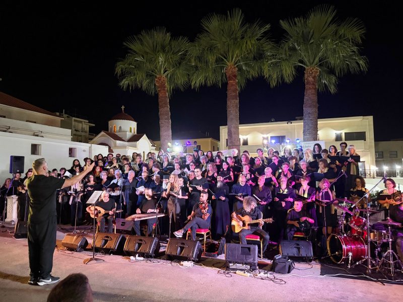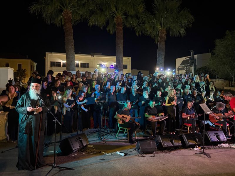 Με την σύμπραξη της Χορωδίας Έντεχνης Μουσικής, υπό τον Μαέστρο κ. Νίκο Μαργαριτάκη και της πολυπληθούς Χορωδίας Βυζαντινής και Παραδοσιακής Μουσικής, υπό τον Χοράρχη κ. Γιώργο Χαχλάκη, του Ωδείου της Ιεράς Μητροπόλεως Κισάμου και Σελίνου, πραγματοποιήθηκε στον άνετο και ευρύχωρο προαύλιο χώρο των Ιδρυμάτων της Ι. Μητροπόλεως, κοινή Συναυλία με μουσικά αφιερώματα, στον συνθέτη Σταύρο Κουγιουμτζή και στην Νησιώτικη Μουσική, αντίστοιχα. Το πολυπληθές χορωδιακό σχήμα, πλαισίωσαν πλήθος καταξιωμένων και έμπειρων μουσικών, συνεργάτες του Ωδείου της Ι. Μητροπόλεως.