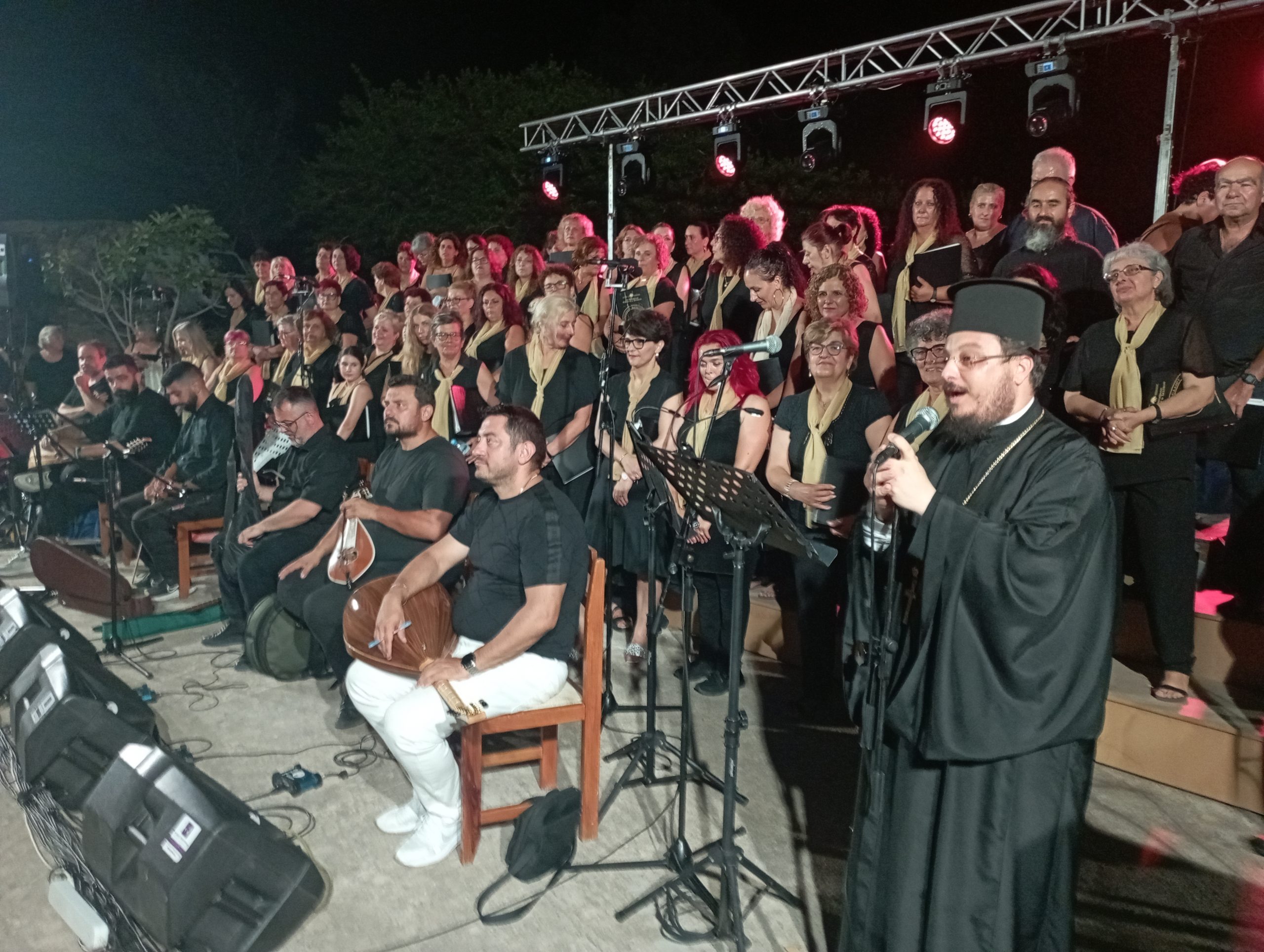 Τον απουσιάζοντα σε, έκτακτο και απρογραμμάτιστο, ταξίδι Σεβ. Μητροπολίτη Κισάμου και Σελίνου κ. Αμφιλόχιο, εκπροσώπησε ο Πρωτοσύγκελλος της Ι. Μητροπόλεως, Παν. Αρχ. π. Αγαθάγγελος (Κουμαρτζάκης), ο οποίος μετέφερε τις ευχές και τα συγχαρητήρια του Σεβ. Ποιμενάρχου κ.Αμφιλοχίου δια την αρτιότητα της απόδωσης των μουσικών ασμάτων ως και δια την ποιότητα του Ωδείου της Ιεράς Μητροπόλεως, το οποίο ως είπε «όχι μόνον προάγει και προβάλλει τον πολιτισμό του τόπου, αλλά παράγει και δημιουργεί πολιτισμό», ευχαριστώντας, επίσης, και την «ΙΟΝ Α.Ε. Βιομηχανία & Εμπόριο Κακάο και Σοκολάτας», «δια την ευγενή χορηγία υλοποίησης της Συναυλίας». Χαιρέτισε, τέλος, καλωσόρισε και ευχαρίστησε, εκ μέρους του απουσιάζοντος Σεβ. Ποιμενάρχου κ.Αμφιλοχίου, και την παρισταμένη εκπρόσωπο της Μονοπρόσωπης Ανώνυμης Εταιρείας IKOS AE, κα Δέσποινα Τζιτζιού, Σύμβουλο Επικοινωνίας Sani/Ikos Group, «δια την απλόχερη αρωγή και στήριξη της ΙΚΟS AE στο προνοιακό, φιλανθρωπικό και πολιτιστικό έργο της Ιεράς Μητροπόλεως», ευχόμενος προς όλους «ένα ευλογημένο, υγιές, χαρούμενο και φωτεινό θέρος».