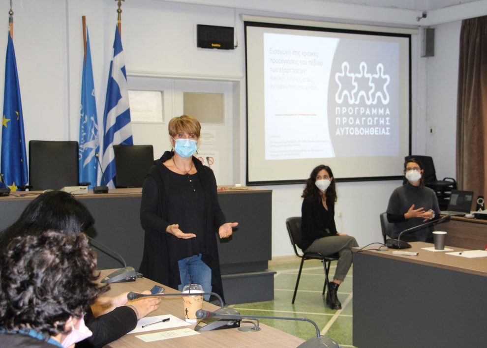 Από την πλευρά της η υπεύθυνη του Προγράμματος Προαγωγής Αυτοβοήθειας, κα. Αδαμοπούλου, παρουσίασε τις εργασίες, που έχουν αναλάβει οι υπεύθυνοι του Προγράμματος, οι οποίες αφορούν κυρίως: