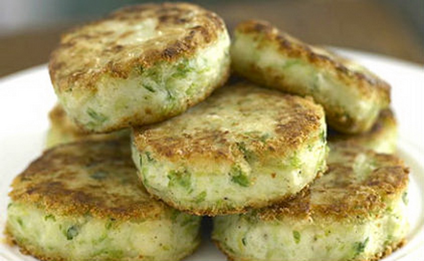 Υλικά: Mισό κιλό κρεμμύδια, μισό κιλό πατάτες, 2 αυγά, 300 περίπου γραμμάρια αλεύρι, αλάτι, πιπέρι, δυόσμο, λάδι (ελαιόλαδο) για το τηγάνισμα.