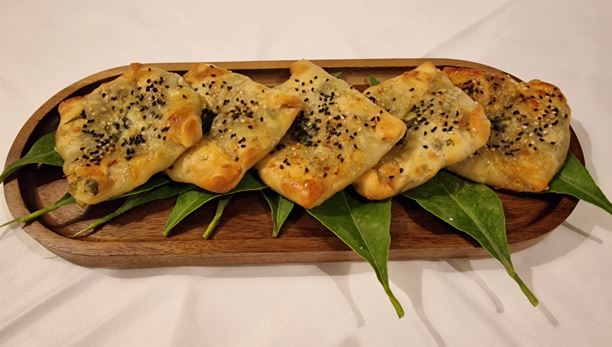 Εκτέλεση: Πλένουμε καλά το σπανάκι και το κόβουμε κομματάκια αφού προηγουμένως έχουμε βγάλει τις ρίζες. Το μαραίνουμε σε μία κενή κατσαρόλα για 5 λεπτά, το στύβουμε με τα χέρια μας και το βάζουμε σ’ ένα μπολ. Εκεί προσθέτουμε το ψιλοκομμένο κρεμμύδι, το αλάτι, το πιπέρι, το δυόσμο, το λάδι και τ’ ανακατεύουμε. Μ’ έναν πλάστη ανοίγουμε φύλλο σε μέγεθος πιάτου τσαγιού. Γεμίζουμε το κάθε φύλλο μας με μία κουταλιά της σούπας γέμιση, από τη γέμιση που έχουμε φτιάξει τα διπλώνουμε, τα κλείνουμε καλά και τα τηγανίζουμε σε καυτό λάδι και από τις δύο πλευρές ή τα ψήνουμε στο φούρνο, για 30-40 λεπτά, στους 180 C. Αν τα ψήσουμε στο φούρνο, τα αλείφουμε πριν με χτυπημένο αυγό και προσθέτουμε σησάμι.