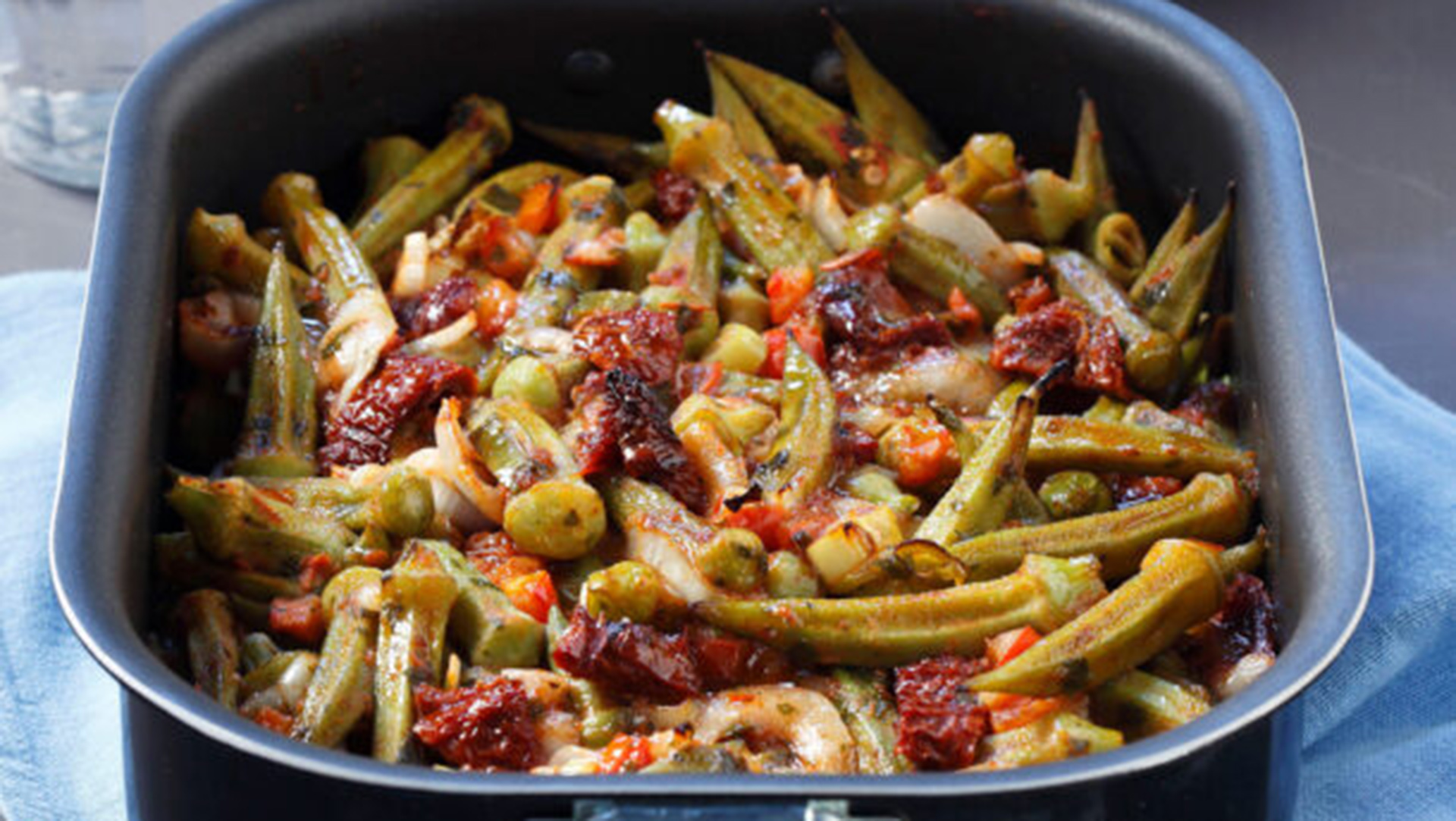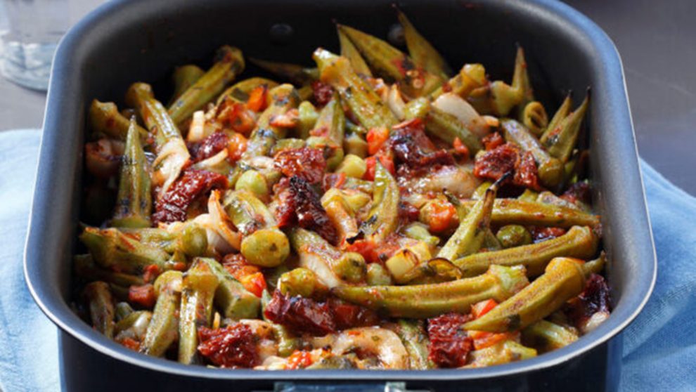 Συνταγή: Μπάμιες στον φούρνο με μαγειρεμένη και ωμή ντομάτα