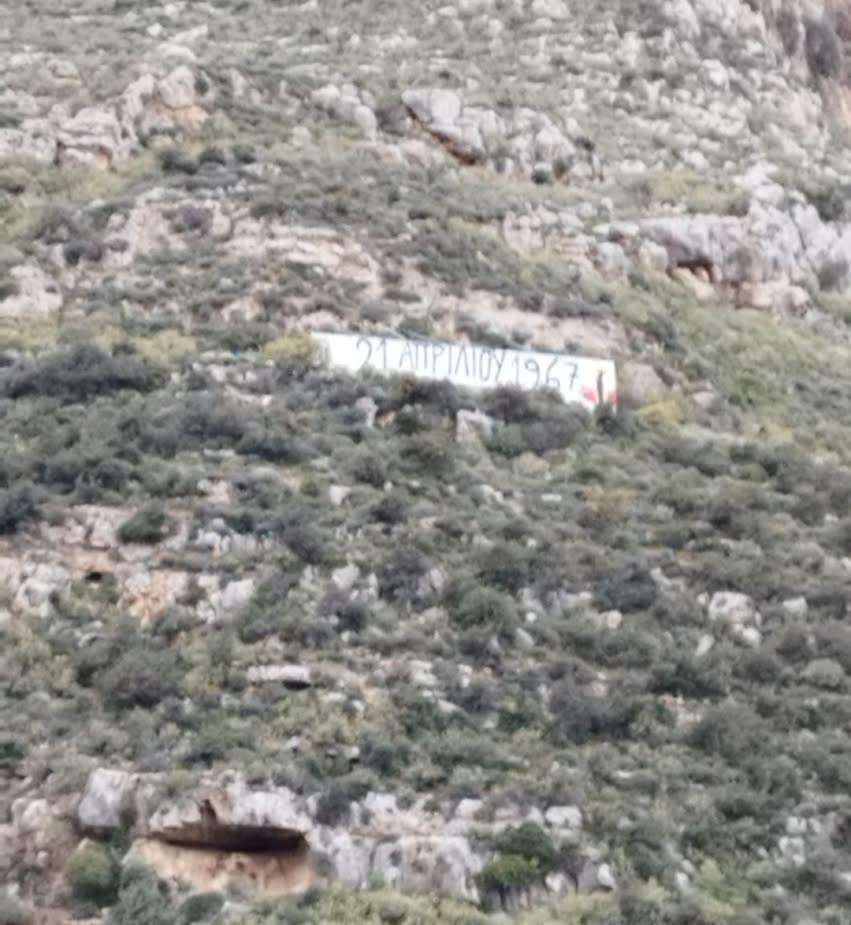 Την παραμονή μίας μαύρης επετείου για τη Δημοκρατία στη χώρα μας, όπως αυτή της 21ης Απριλίου του 1967, υμνητές και νοσταλγοί της επταετίας έβαλαν πανό στην εθνική οδό από Μεγάλα Χωράφια για Σούδα.