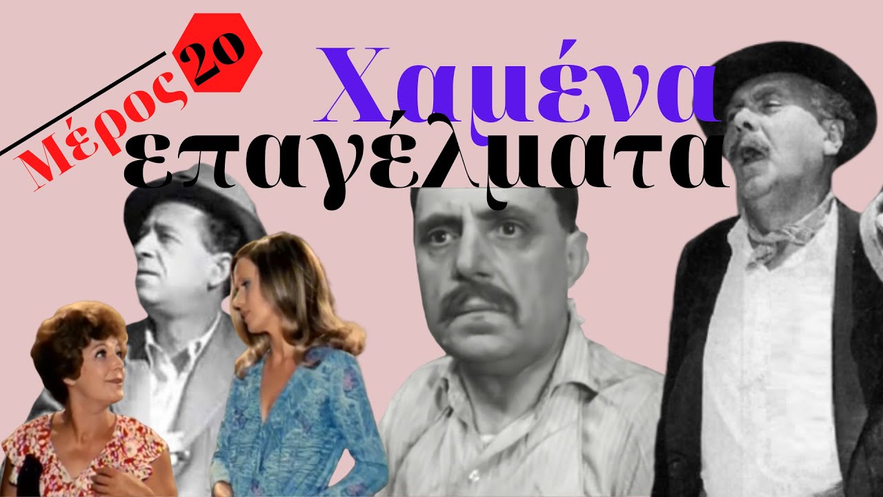 Η βίαιη αστικοποίηση και η άνθιση του τεχνολογικού πολιτισμού, άφησε πίσω έναν σωρό χαμένα επαγγέλματα να χαθούν. Επαγγέλματα που τα θυμόμαστε μόνο από τις διηγήσεις των παππούδων μας, αλλά κι από τα καρέ πολλών Ελληνικών ταινιών κυρίως της δεκαετίας του 50. Μια ανθολόγηση αυτών των επαγγελμάτων από τις Ελληνικές ταινίες, σε δύο μέρη: