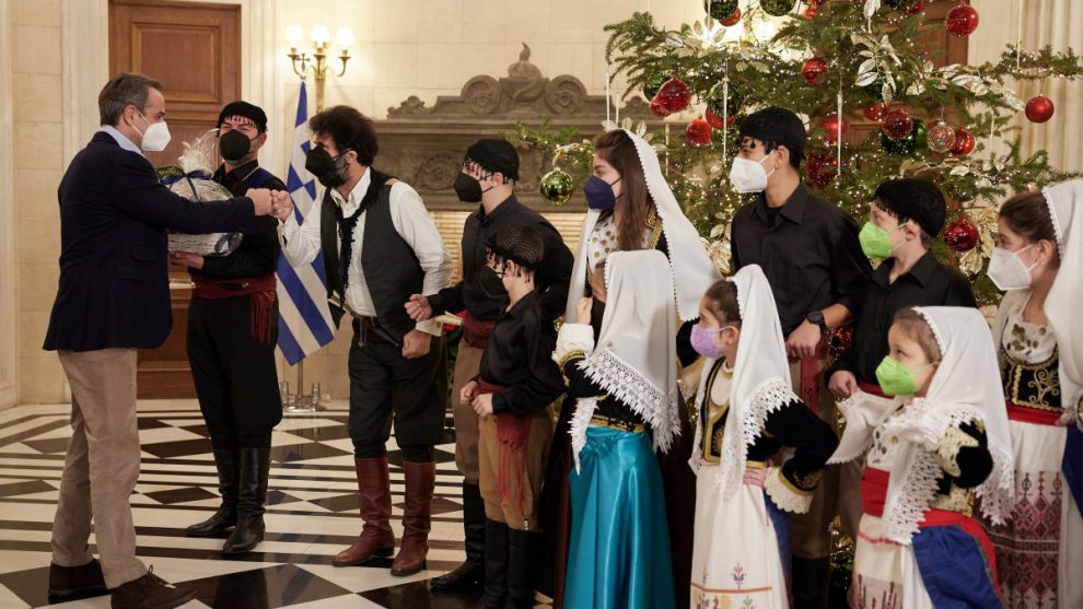 Από τα παιδιά του Συλλόγου Ασηγωνιωτών Αττικής «Παύλος Γύπαρης» άκουσε τα κάλαντα της Πρωτοχρονιάς ο Πρωθυπουργός Κυριάκος Μητσοτάκης.