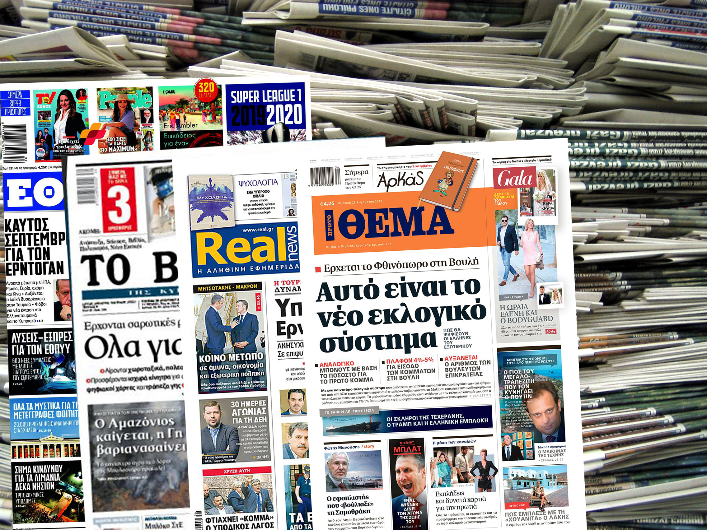 Τα πρωτοσέλιδα των Κυριακάτικων εφημερίδων (10-11-2019)