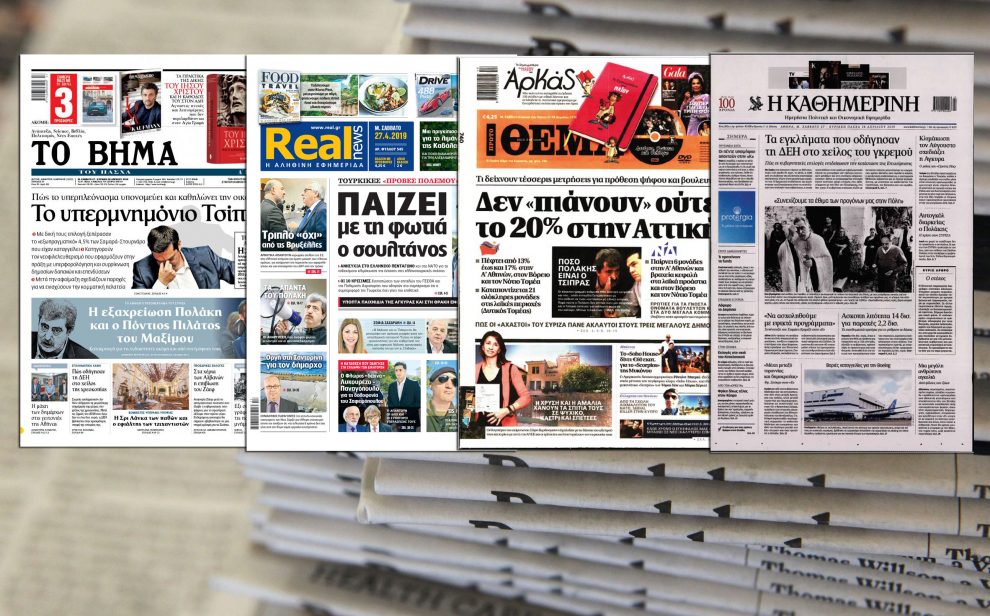 Τα πρωτοσέλιδα των Κυριακάτικων εφημερίδων (3-11-2019)