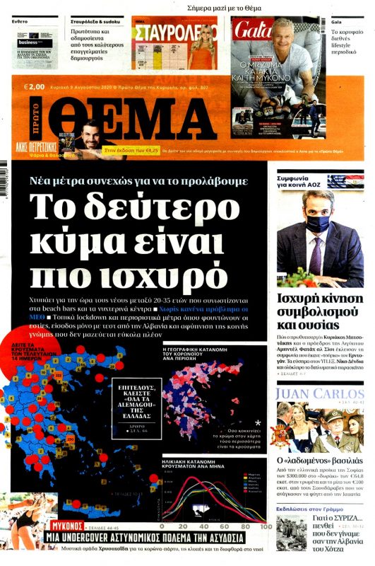 Tα πρωτοσέλιδα των Κυριακάτικων εφημερίδων (9-8-2020)