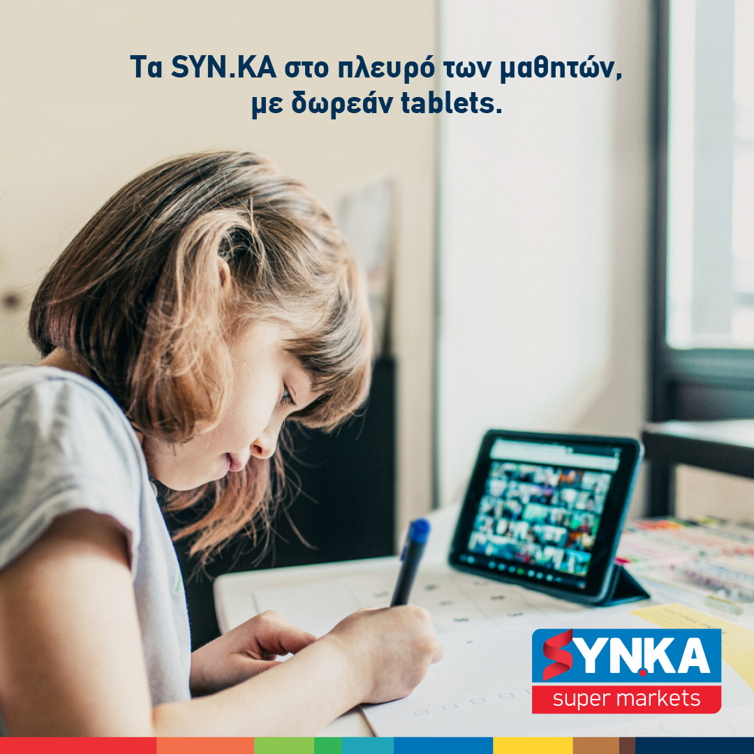 Ο όμιλος SYN.KA Super markets προχώρησε στη προμήθεια 270 tablets που πληρούν τις προδιαγραφές του Υπουργείου Παιδείας και Θρησκευμάτων, στα πλαίσια της εταιρικής και κοινωνικής ευθύνης, σε συνεργασία με τον Δήμο Χανίων.