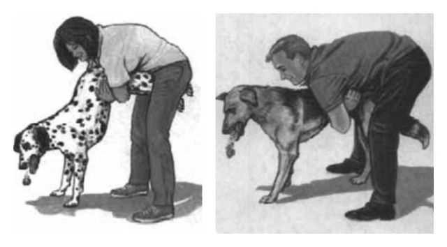 1. Σταθείτε πίσω από το σκυλί σας και πιάστε τον γύρω από τη μέση.