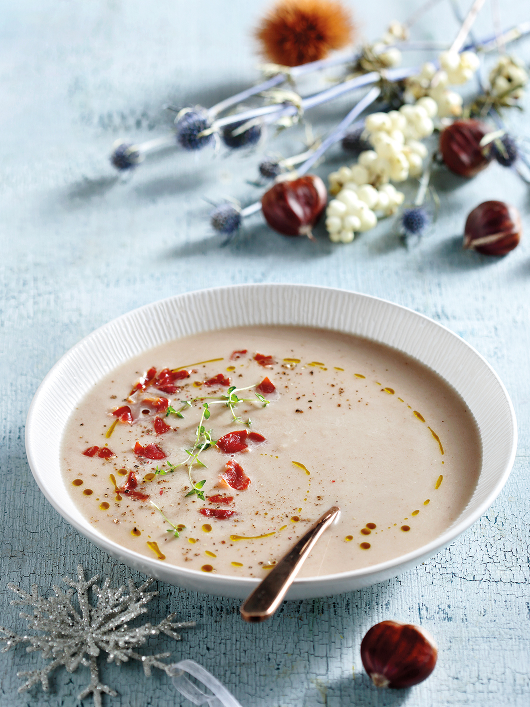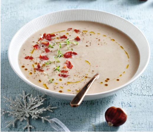 Σούπα με κάστανο, σελινόριζα και λούντζα