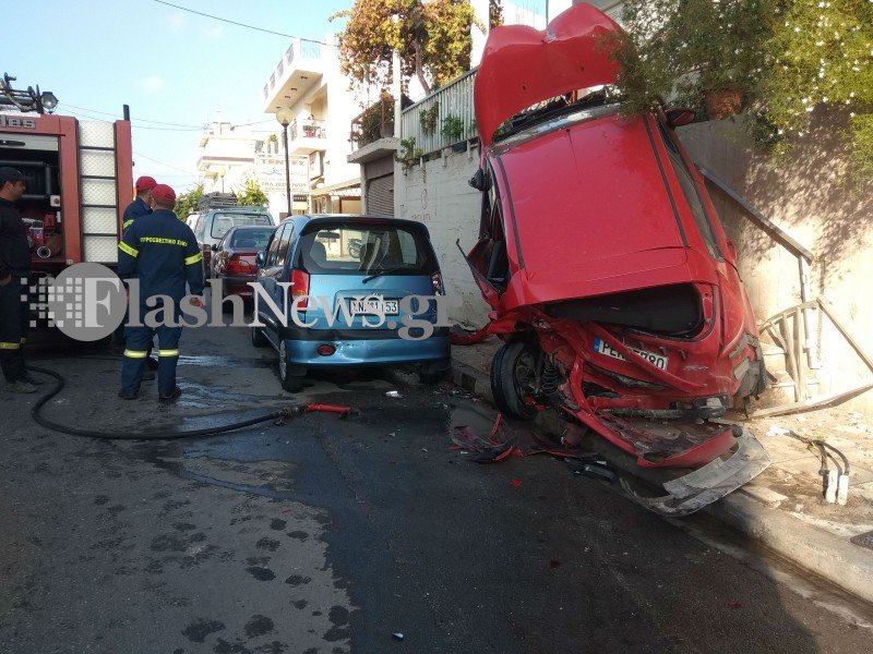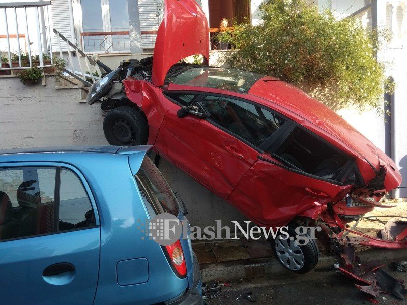 Η πρόσκρουση ήταν τόσο σφοδρή που, όπως φαίνεται στις φωτογραφίες του Flashnews.gr, η μπροστινή πλευρά του ενός εκ των δύο αυτοκινήτων ανασηκώθηκε και ολόκληρο το όχημα στάθηκε όρθιο, στις δυο πίσω ρόδες. καταλήγοντας σε τοιχίο της εισόδου σπιτιού.