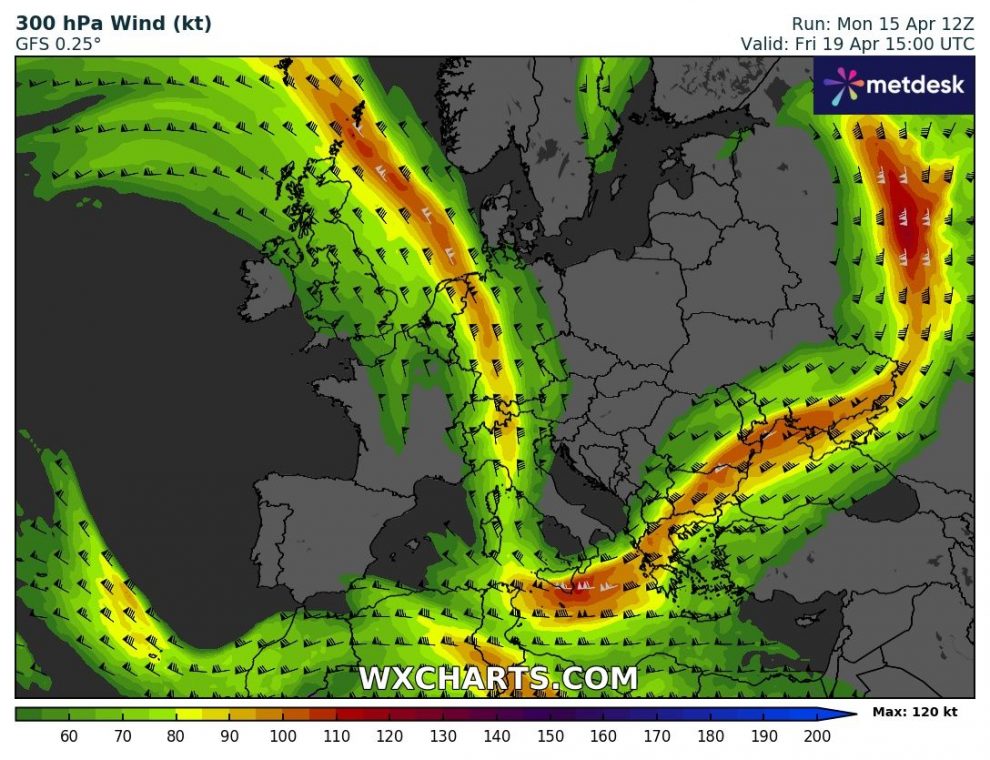 Αιτία φυσικά ο υποτροπικός αεροχειμαρρος ,ο οποίος έχει διαθέσεις να ανέβει αρκετά ψηλά στην ευρωπαϊκή ήπειρο.