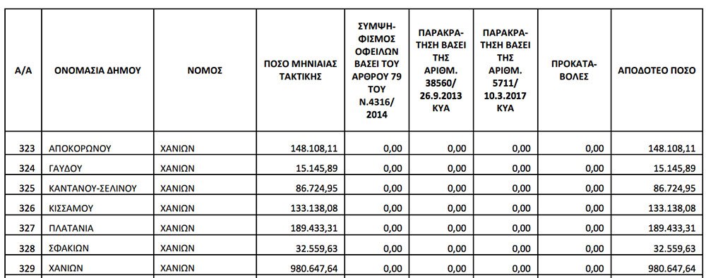 Δείτε τα ποσά που αναλογούν στους Δήμους του Νομού Χανίων: