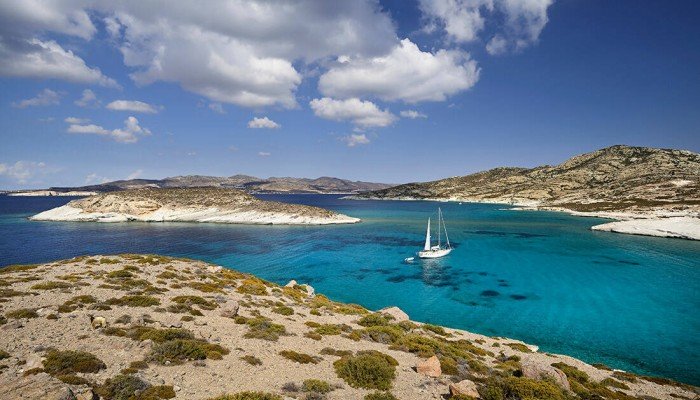 Αν δεν έχεις δικό σου σκάφος, περνάς με καΐκι απέναντι από την Αρζεντιέρα, όπως έλεγαν οι Ενετοί την Κίμωλο από τους ασημόχρωμους βράχους της, και προσγειώνεσαι σε πεντάμορφους κολπίσκους με αμμουδερές παραλίες και μεθυστικά νερά. Δρομολόγια έχει συνήθως και από τη Μήλο και από τη Σίφνο και από τη Φολέγανδρο.