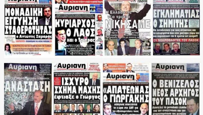 Προτιμήστε να διαβάσετε, μετά από ένα απλό Google search, μερικά από τα πρωτοσέλιδα της «Αυριανής» και να βάλετε στο μυαλό σας ότι πουλούσε μόνη της πολλαπλάσια φύλλα από ό,τι όλες οι εφημερίδες μαζί σήμερα.