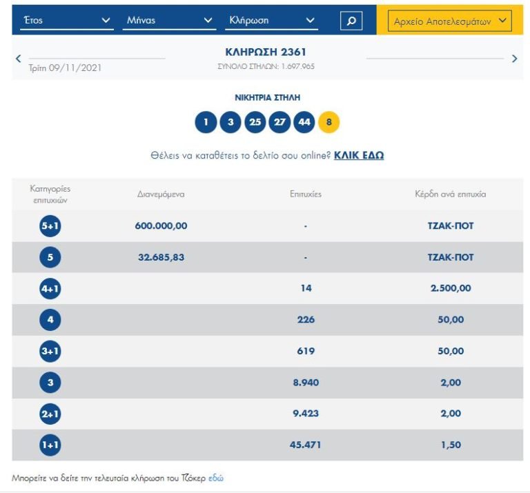 ΕΛΛΑΔΑ Τζόκερ: Αυτοί είναι οι τυχεροί αριθμοί για τις 600.000 ευρώ 9 Νοεμβρίου 2021 22:18 Μοιραστείτε αυτό! Facebook Twitter Google Plus Pinterest LinkedIn Σήμερα, 9 Νοεμβρίου 2021, στην κλήρωση 2361 Τζόκερ θα μοιραστούν στους τυχερούς της πρώτης κατηγορίας τουλάχιστον 600.000 ευρώ. Οι τυχεροί αριθμοί στη σημερινή κλήρωση Τζόκερ είναι οι εξής: 3, 44, 25, 1, 27 και Tζόκερ ο αριθμός 8. μπορεί να σου αρέσει επίσης Δήμος Κισάμου • ΠΑΙΔΕΙΑ - ΕΚΠΑΙΔΕΥΣΗ Κίσαμος: Διαδραστικό εργαστήριο «Ζογκλερικά Αλλιώς» με τον Circus Camino στην Ποταμίδα 5 Δεκεμβρίου 2025 ΕΛΛΑΔΑ • ΚΡΗΤΗ Νέο Έκτακτο Δελτίο Επιδείνωσης Καιρού – Η εικόνα στην Κρήτη 5 Δεκεμβρίου 2025 Νομός Χανίων Χανιά: Η Δημοτική Βιβλιοθήκη εκπροσώπησε την Ελλάδα στο διεθνές πρόγραμμα «Βιώσιμες Βιβλιοθήκες» του Goethe-Institut στη Βαρσοβία 5 Δεκεμβρίου 2025 Πέθανε ο τραγουδιστής Χρήστος Κυριαζής (BINTEO) Σαρηγιάννης: Πιθανόν να φτάσουμε σε 100 νεκρούς τη μέρα ως τα μέσα Δεκεμβρίου Μοιραστείτε αυτό! Facebook Twitter Google Plus Pinterest LinkedIn ΡΟΗ ΕΙΔΗΣΕΩΝ Δήμος Κισάμου • ΠΑΙΔΕΙΑ - ΕΚΠΑΙΔΕΥΣΗ Κίσαμος: Διαδραστικό εργαστήριο «Ζογκλερικά Αλλιώς» με τον Circus Camino στην Ποταμίδα 5 Δεκεμβρίου 2025 14:19 ΕΛΛΑΔΑ • ΚΡΗΤΗ Νέο Έκτακτο Δελτίο Επιδείνωσης Καιρού – Η εικόνα στην Κρήτη 5 Δεκεμβρίου 2025 13:16 Νομός Χανίων Χανιά: Η Δημοτική Βιβλιοθήκη εκπροσώπησε την Ελλάδα στο διεθνές πρόγραμμα «Βιώσιμες Βιβλιοθήκες» του Goethe-Institut στη Βαρσοβία 5 Δεκεμβρίου 2025 13:10 Νομός Χανίων Χανιά: Χωρίς προβλήματα η κακοκαιρία Byron – Προειδοποίηση για νέα επιδείνωση 5 Δεκεμβρίου 2025 13:09 ΕΛΛΑΔΑ ΓΣEE: Τι ισχύει για τους εργαζόμενους σε συνθήκες κακοκαιρίας 5 Δεκεμβρίου 2025 12:57 ΕΛΛΑΔΑ • ΟΙΚΟΝΟΜΙΑ ΕΛΣΤΑΤ: Στο 2% η ανάπτυξη της ελληνικής οικονομίας κατά το τρίτο τρίμηνο του έτους 5 Δεκεμβρίου 2025 12:43 ΕΛΛΑΔΑ • ΟΙΚΟΝΟΜΙΑ Aνακήρυξη της Πειραιώς ως η «Καλύτερη Τράπεζα στην Ελλάδα» στα Bank of the Year Awards 2025 5 Δεκεμβρίου 2025 12:35 ΚΡΗΤΗ Kρήτη: Δε στάθηκε εμπόδιο η βροχή στο συλλαλητήριο των συνταξιούχων 5 Δεκεμβρίου 2025 12:28 ΑΓΡΟΤΙΚΑ • ΚΡΗΤΗ Kρήτη: Κλειστά τη Δευτέρα λιμάνια, αεροδρόμια και δημόσιες υπηρεσίες μετά την ακύρωση της συνάντησης με τον Κωστή Χατζηδάκη 5 Δεκεμβρίου 2025 12:10 ΕΝΔΙΑΦΕΡΟΝΤΑ Oι ιδανικές ώρες για να αερίσουμε το σπίτι το Χειμώνα – Ποιες πρέπει να αποφεύγουμε 5 Δεκεμβρίου 2025 11:51 ΑΘΛΗΤΙΚΑ Μουντιάλ: Απόψε η κλήρωση των ομίλων της τελικής φάσης – Πότε ξεκινάει 5 Δεκεμβρίου 2025 11:35 ΚΡΗΤΗ Kρήτη: Νέες προσλήψεις ψυχιάτρων – Ανακοινώθηκαν 19 θέσεις στην 7η ΥΠΕ 5 Δεκεμβρίου 2025 11:01 ΑΘΛΗΤΙΚΑ Euroleague: Αναβλήθηκε το πολυαναμενόμενο χθεσινό ματς Ολυμπιακός-Φενερμπαχτσέ λόγω κακοκαιρίας 5 Δεκεμβρίου 2025 10:34 ΚΡΗΤΗ Kρήτη: Στο εδώλιο σήμερα το ζευγάρι για την κακοποίηση των 8 παιδιών τους – Οι κατηγορίες (βίντεο) 5 Δεκεμβρίου 2025 10:15 ΟΙΚΟΝΟΜΙΑ Επίδομα Θέρμανσης: Τέλος χρόνου για τις αιτήσεις – Κλείνει σήμερα η πλατφόρμα 5 Δεκεμβρίου 2025 09:56 Δημοφιλή αυτή την εβδομάδα