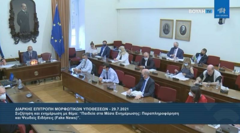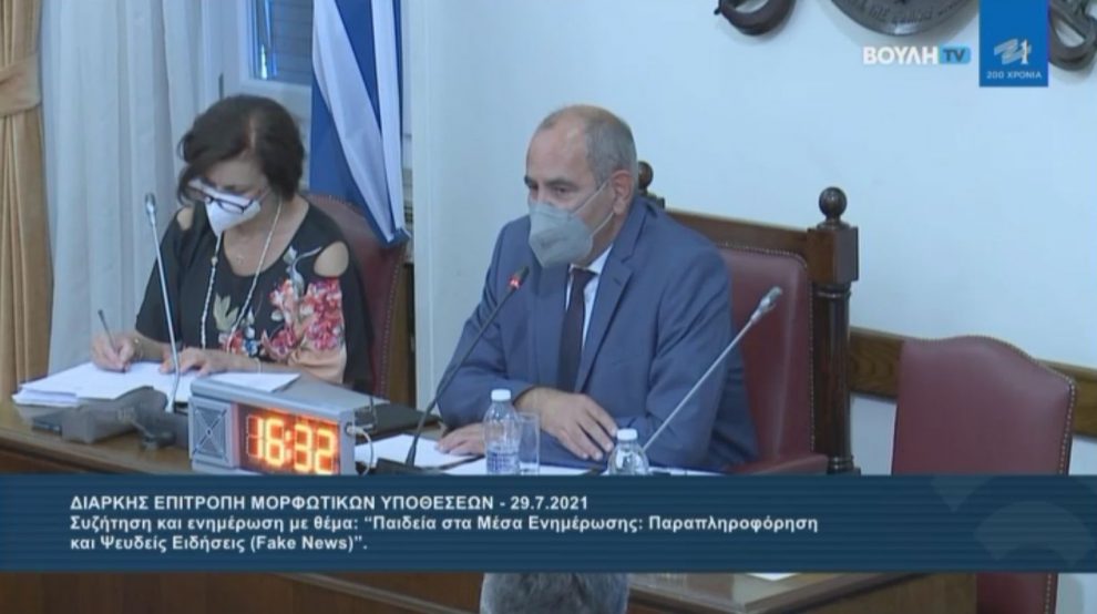 Επί σχεδόν 4 ώρες και σε άριστο κλίμα συνεδρίασε την Πέμπτη 29 Ιουλίου 2021, η Επιτροπή Μορφωτικών Υποθέσεων της Βουλής για το ιδιαίτερα σημαντικό θέμα: «Παιδεία στα Μέσα Ενημέρωσης: Παραπληροφόρηση και ψευδείς ειδήσεις (fake news)», όπως φάνηκε και από τη συμμετοχή μεγάλου αριθμού βουλευτών τόσο διά ζώσης όσο και εξ αποστάσεως.