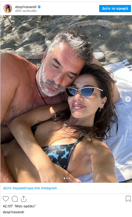 Χαλαρές στιγμές απολαμβάνουν η Δέσποινα Βανδή και ο Βασίλης Μπισμπίκης για ακόμα μία φορά στην Κρήτη. Η τραγουδίστρια τραγουδίστρια μοιράστηκε με τους διαδικτυακούς της φίλους ορισμένα στιγμιότυπα, όπου είναι αγκαλιά με τον Βασίλη Μπισμπίκη και ξαπλωμένοι επάνω σε μία πετσέτα.