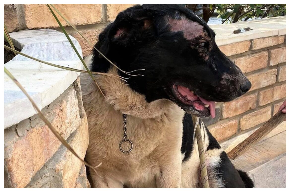 Ο σκύλος που βλέπετε στη φωτογραφία βρέθηκε δεμένος, παρατημένος και καμένος. Το σημαντικό είναι το καμένος αλλά ίσως το δεμένος λέει πολλά περισσότερα. Σίγουρα λέει.