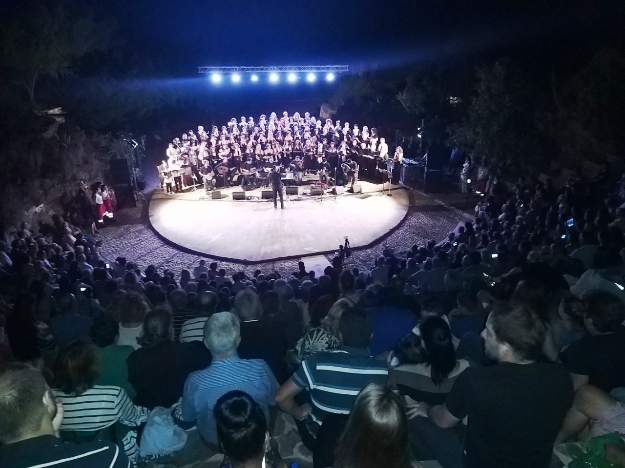 Πλημμύρισε από κόσμο το πέτρινο αμφιθέατρο του Ευρωμεσογειακού Κέντρου Νεότητας της Ορθοδόξου Ακαδημίας Κρήτης, χωρητικότητας 900 και πλέον προσώπων, στο κάλεσμα του Ωδείου της Ι. Μητροπόλεως Κισάμου και Σελίνου, με την πολυπληθή χορωδία Παραδοσιακής και Βυζαντινής Μουσικής, η οποία αριθμεί πλέον των 130 χορωδών, να ταξιδεύει το πολυπληθές ακροατήριο σε ένα μουσικοχορευτικό ταξίδι στην Μικρά Ασία, με τίτλο «Βασιλικός μυρίζει εδώ…». Η άρτια απόδοση των τραγουδιών και η άριστη διεύθυνση της χορωδίας υπό του καταξιωμένου, πλέον, χοράρχη και μουσικοδιδασκάλου του Ωδείου κ. Γεωργίου Χαχλάκη, υπό τους ήχους του Βιολιού, της Πολίτικης Λύρας, του Λαούτου, του Σάζι, του Ούτι, του Κανονάκι και των Κρουστών, μάγεψαν το ακροατήριο που ασφυκτικά είχε γεμίσει το πέτρινο θέατρο.