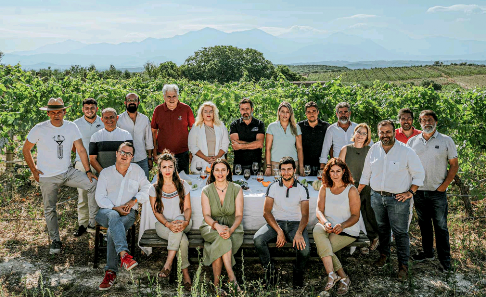 Στους μακριούς διαδρόμους με τις κάθετες φυτεύσεις, το χώμα είναι στεγνό και ελαφρύ. Σε κάθε βήμα νιώθουμε να βουλιάζουμε λίγο βαθύτερα, όσο περπατάμε στον αμπελώνα Ψαράδες του χωριού Αλάγνι, στην αμπελουργική ζώνη των Πεζών. Έχουμε φτάσει πολύ νωρίς το πρωί, για να γλιτώσουμε από τον καυτό ήλιο του Ιουλίου. Μπροστά σε αμπελιές ηλικίας τριάντα και πλέον ετών, της ποικιλίας Δαφνί, στήνουμε ένα μεγάλο τραπέζι. Στρώνουμε λευκό βαμβακερό τραπεζομάντιλο, βάζουμε τυρί, ψωμί, φρούτα και περισσότερα από είκοσι ποτήρια κρασιού, και προσκαλούμε τους οινοποιούς του Ηρακλείου να καθίσουν κοντά μας. Μας τιμούν 19 από τους συνολικά 26 παραγωγούς του Ηρακλείου, μέλη του δικτύου Wines of Crete, του οργανισμού που δημιουργήθηκε για να εκπροσωπεί και να υποστηρίζει τη μεγαλύτερη οινοπαραγωγική περιοχή του νησιού και μία από τις ιστορικότερες της Ελλάδας και του Παλαιού Κόσμου.