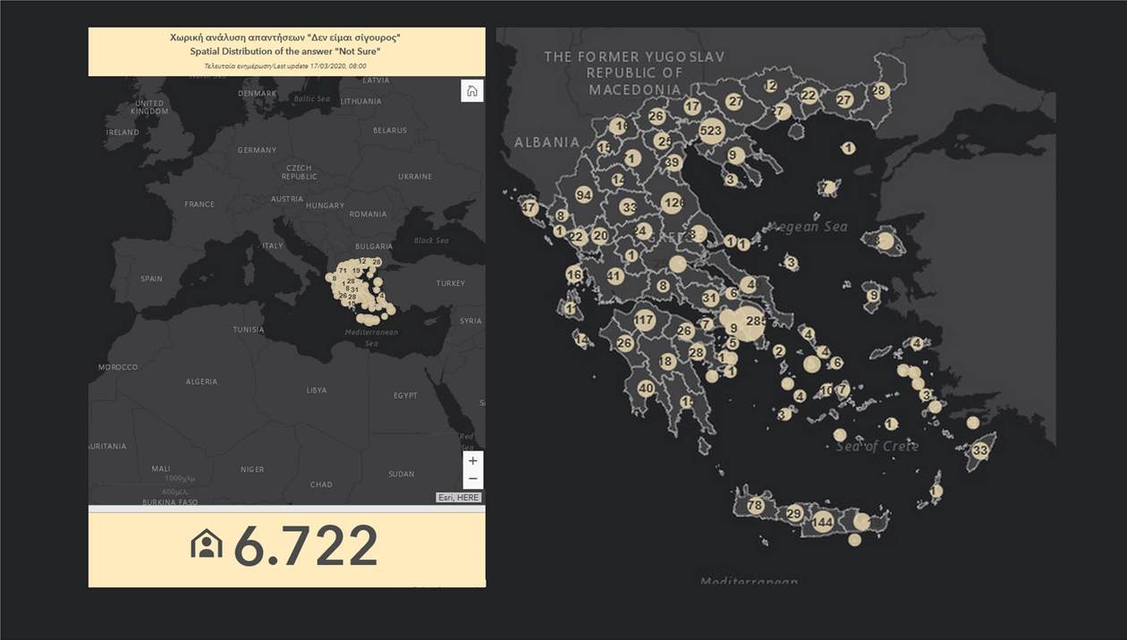 Στον σύνδεσμο εδώ φαίνεται η χωρική εξάπλωση του ιού COVID-19, σε σχεδόν πραγματικό χρόνο. Τα αποτελέσματα της ανάλυσης γίνονται σε τακτά χρονικά διαστήματα».