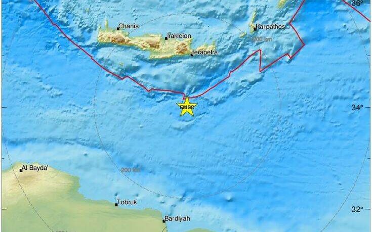 Σεισμός μεγέθους 4,2 βαθμών της κλίμακας Ρίχτερ σημειώθηκε στον θαλάσσιο χώρο νότια της Κρήτης, στις 22:09 της Τρίτης (19/5).