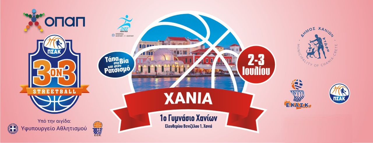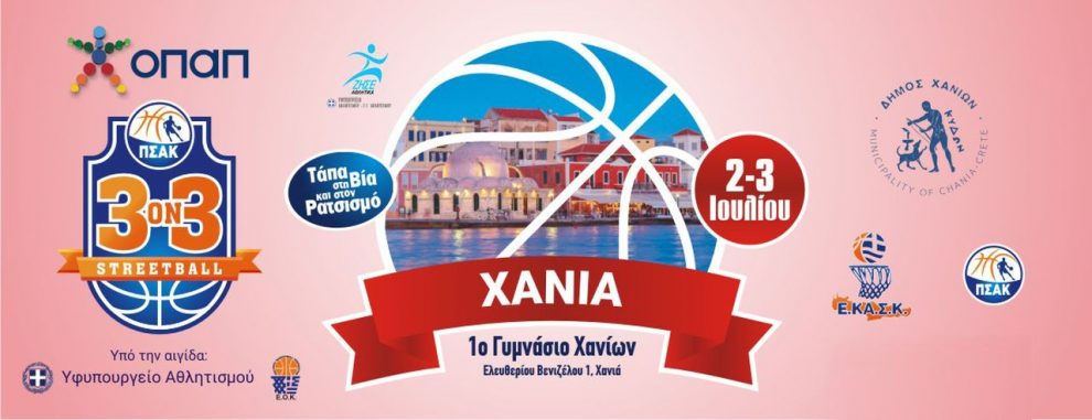 Ο Δήμος Χανίων και ο Πανελλήνιος Σύνδεσμος Αμειβομένων Καλαθοσφαιριστών διοργανώνουν το τουρνουά καλαθοσφαίρισης «3on3 Streetball – Τάπα στη βία και στον ρατσισμό» στις 2 και 3 Ιουλίου 2022, στο 1o Γυμνάσιο Χανίων.