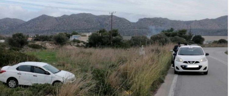 Μάλιστα, το άσπρο αυτοκίνητο ξέφυγε του δρόμου και «προσγειώθηκε» σε χωράφι.