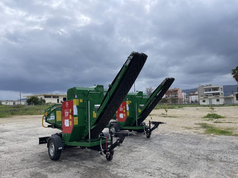 - 2 φορτηγά με εγκατεστημένο γερανό με αρπάγη καθώς και δύο ρυμουλκούμενους κλαδοτεμαχιστές
